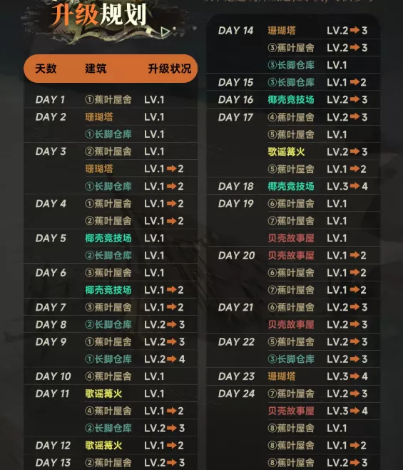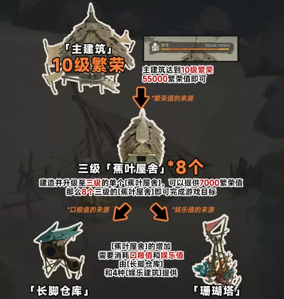 2、建造并升级至三级的单个蕉叶屋舍,允许给予7000繁荣值,8个三级的蕉叶屋舍,即可完成游戏目标。