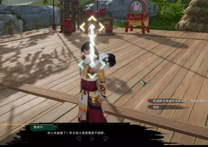 我们向他打听马匹丢失的事情,他让我们先比赛,和第一天一致参赛即可。