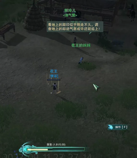 他走的很慢,不用等,朝他走的方向飞,大概刚过岸边“流动红旗”的地方就看到了这几个人,靠近开始剧情。