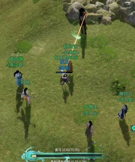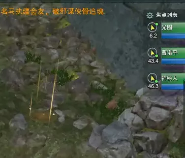 之后我们往身后的山上飞,看见一个神秘人。神秘人位置在武狱黑牢和浩气复活点中间。【如图位置】