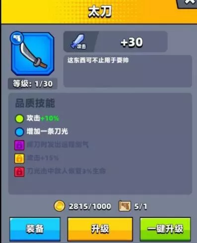 所有武器的基础属性都是一样的,值得一说的是它们增强品质后自带的品质属性更是不同的,蓝武太刀会额外增加一条刀光。