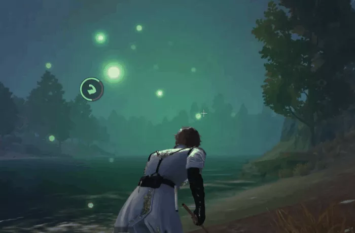 装备上捕虫网跑到萤光里面,一边跑一边挥动捕虫网,记得准心要对准萤光噢,这样子捉萤火虫的效率会更高。