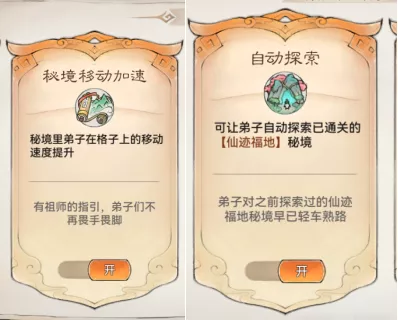 另外,随着宗门等级的增强,我们可行在宗门大殿来研习一些法令来增加我们探索秘境的效率。