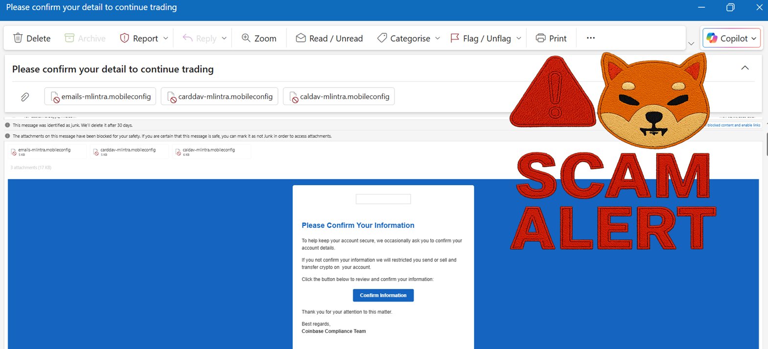 警惕冒充Coinbase的钓鱼邮件,SHIB持有者需提高防范意识