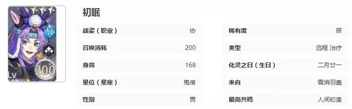 初眠不进行普通攻击,仅从罐子里拿出梅子投向友方祝者,每次为治疗目标回复他自身攻击力100%的心性并增加目标10%的攻击力。