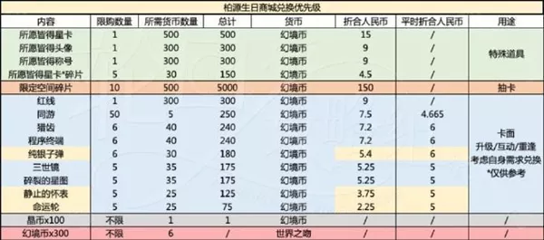 1、一般情况下白嫖抽卡选手,无论如何先兑碎片,其余材料可参考以下性价比按需兑换。