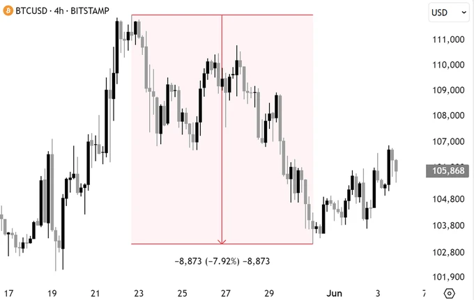 本周,比特币出现约 8% 的回调,符合以往的惯例。目前已经出现反弹,表明在 104000 至 105000 美元附近存在强劲买盘。