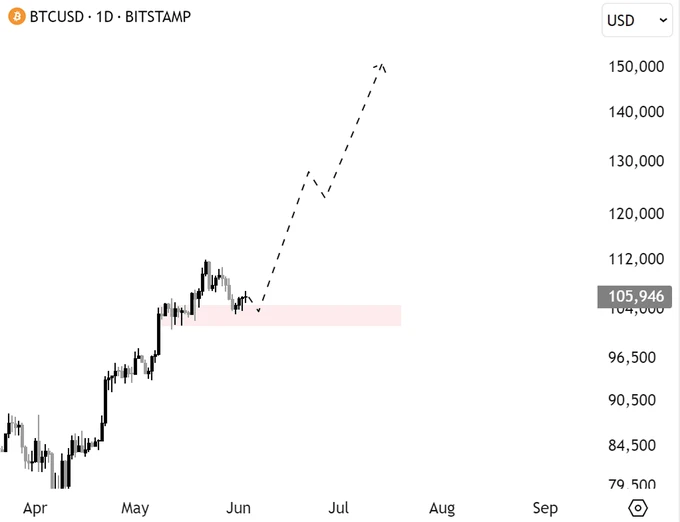 如果能守住 10.5 万美元(我们大概率能做到),将直指 15 万美元大关,重演金叉形态走势。