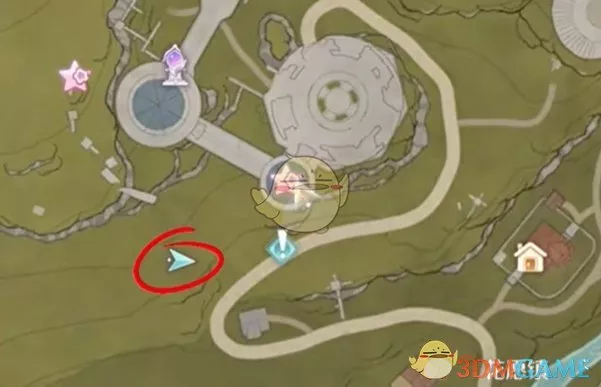 1、首先我们开启地图,传送到花愿镇的半山腰位置;