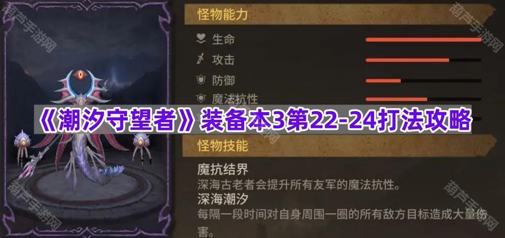 潮汐守望者装备本3-24怎么过?游戏在更新剧毒之潮版本后给装备本3新增了2个3个关卡,挑战关卡后可以获得古灵和炽魔这2套核心装备。新开的3个关卡小怪生命值和Boss的攻击力都得到了大幅提高。那么接下来就和小编一起看看《潮汐守望者》装备本3第22-24打法攻略吧。
