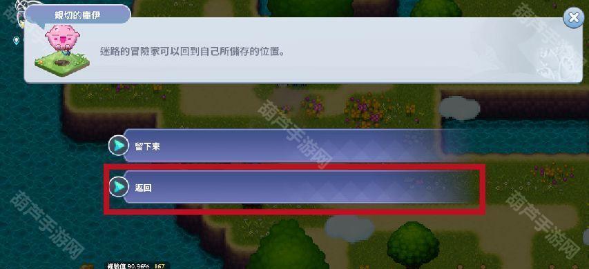 在庭院中找到NPC亲切的库伊(位置随机),对话后可以返回自己设定的复活点
