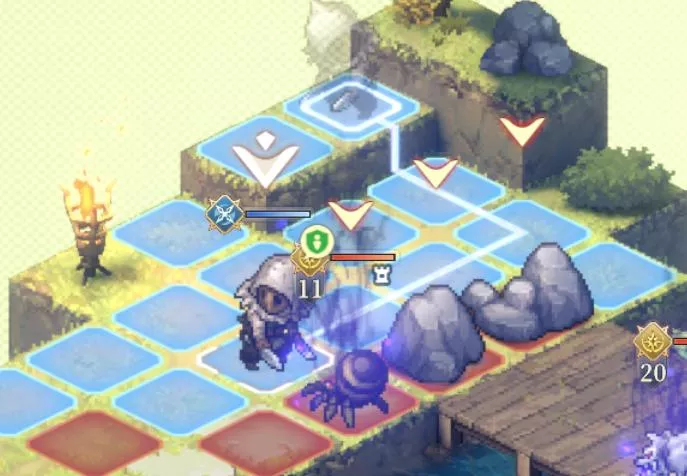 2、如下图所示,职业模仿这个光系小伙伴,继而到后面普攻1号,到4号位置,闪击2号,到5号位置,普攻 3号,继而移动到放大镜位置处待机