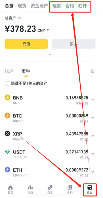1.需要把币安里面的钱都提走。点击右下角的【资金】,如果你的理财账户里面有钱也要把它拿出来。去理财账户里面去看一下,如果有持仓的理财信息,都要挨个把它赎回一下。之后再把所有的钱都划转到我们的现货账户里面。包括U本位、币本位里面的钱也都转到现货账户里面。