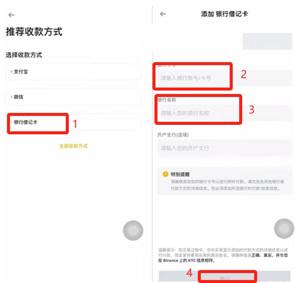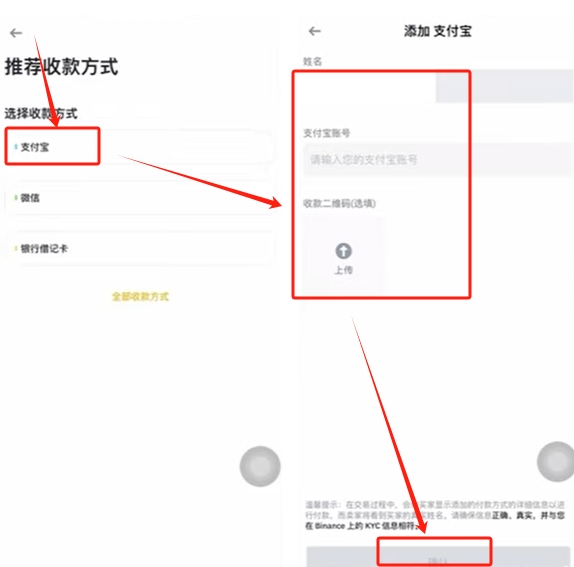 在这里有一些个人的经验想分享给大家。银行卡是可以添加很多张银行卡的,但是我一般只添加一个单独专门用于币圈交易的银行卡,并且不要使用自己的工资卡、社保卡一类的会自动付钱、打钱的卡,那样子万一你牵扯到了一笔黑钱交易,他把你的卡冻结了,你的那张卡是你的工资卡,那多难受呀。并且支付宝和微信上面的二维码,大家也是添加上去会很方便,但其实不是很推荐大家添加上去,我们可以在交易的时候再发二维码,都是很方便的,以免商家付款的时候出现问题。比如说你的支付宝已经被冻结了,只能进不能出。那么你在进行一笔交易的时候,你忘记了修改,商家他又很眼疾手快,他通过你的二维码把钱付费到了你的支付宝里,这样你的钱只能进不能出是很难受的。