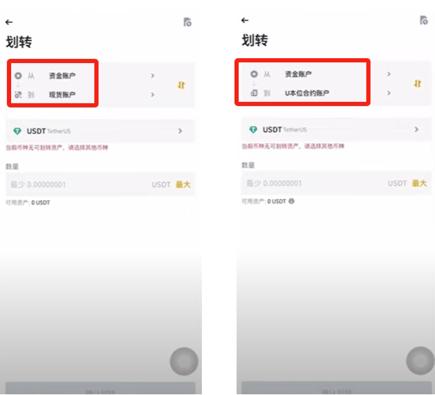 如果你上方的现货账户到资金账户是反的,不是对应的。我们可以点击右边的交换按钮,把它进行一下交换。点击下方的【确认划转】就立马划转成功了。