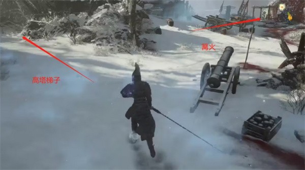目标:燃起三座“血烟篝火”,吊桥就会自降。