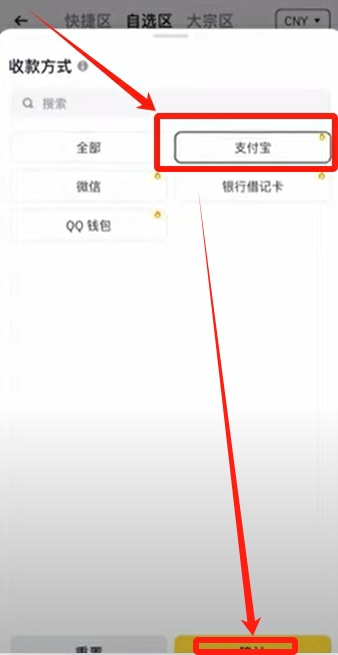 支付方式这里我们可以筛选一下我们的收款方式,比如说我想用支付宝收款,点击【确认】。