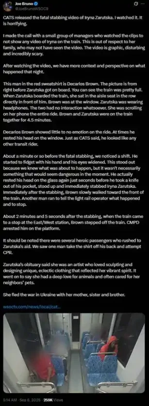 但此时,Iryna Zarutska 被害的监控画面还没有被披露,这是案件发生到代币部署中间出现了一段「真空期」的原因。案发现场的监控录像于 9 月 6 日被披露,我们随之可以在 Twitter 上看到相关的讨论。