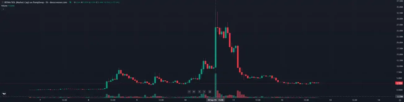 Iryna Zarutska 在地铁上被杀害的案件发生在 8 月 22 日,但 $IRYNA 代币是在 9 月 6 日才被部署的。并且,在 9 月 6 日与 9 月 7 日这两天,$IRYNA 的最高市值甚至都没有突破 100 万美元。