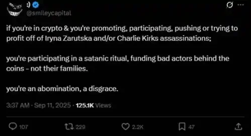 (前情提要:比特币信仰领袖Charlie Kirk中弹身亡,加密社群上链哀悼:自由已死 )