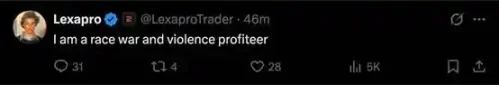 Lexapro 同样受到指责,因为他发推文表示,「我是种族冲突和暴力的(交易)获利者」。Lexapro 同样已经删除了这条推文。从下面的截图中可以看到,Lexapro 之前还挂着 meme 币交易 App Padre 的附属勋章,而目前 Padre 也已经将 Lexapro 从附属帐号中移除。