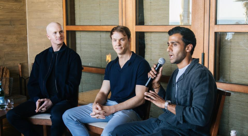 2024 年 9 月,Coinbase 首位首席商务官 Shan Aggarwal 在 Coinbase Ventures 年度峰会上主持与 Coinbase 联合创始人 Brian Armstrong 和 Fred Ehrsam III 的炉边谈话。