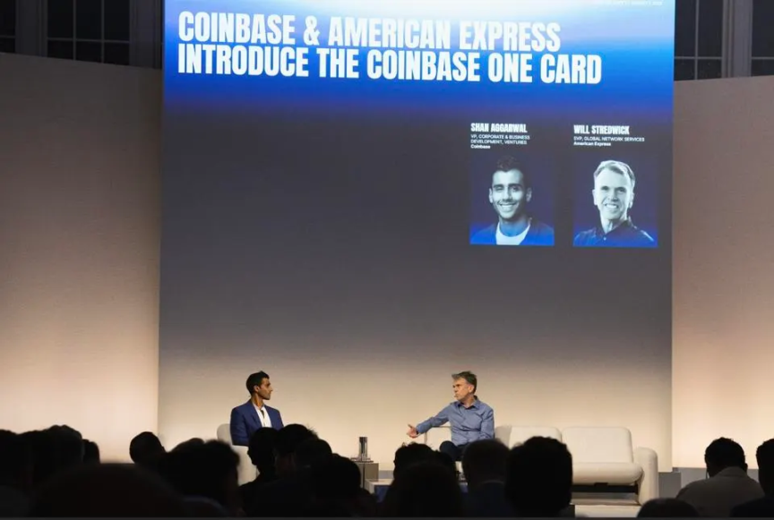 2025 年 6 月,Shan 与美国运通高级副总裁 Will Stredwick 一同登上 Coinbase 加密货币峰会的舞台,谈及全新的 Coinbase One 信用卡(该卡为美国运通卡)