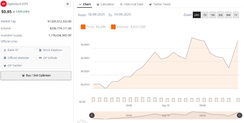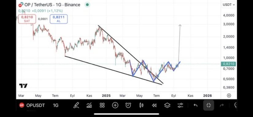 截至发稿,Optimism报价0.821美元附近,突破2024年全年压制价格的下降楔形。这一转变预示潜在趋势反转,更高低点与更高高点开始形成。