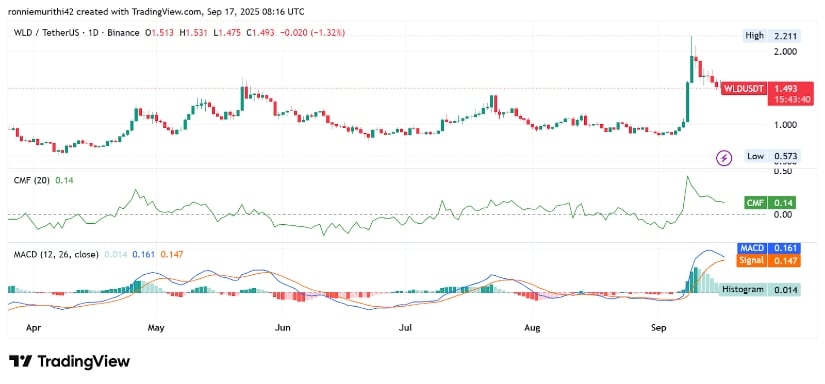 技术指标呈现建设性但谨慎的展望。佳庆资金流量(CMF)维持中性附近,表明资金流入平稳但不出彩。同时MACD微幅高于信号线,柱状图为正,虽波动率受抑仍释放看涨动能初期信号。这些迹象显示市场处于平衡状态,若条件具备买家或准备发动新一轮攻势。