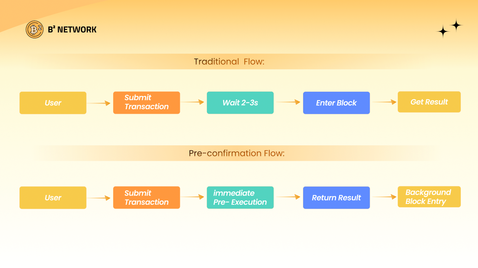 这种体验差距,已成为阻碍区块链大规模普及的关键瓶颈之一。如今,借助 B² Hub 的 Pulsar 实现与预确认技术,我们终于能够让区块链的交易速度追上 Web 2。