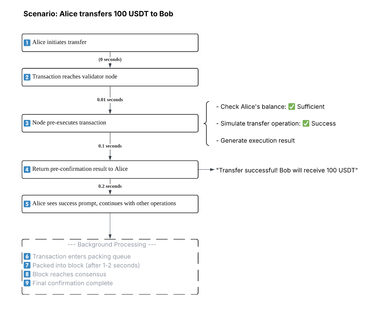 - 最终确认:预确认仅提供快速反馈,最终仍由链上共识完成,双层机制确保资产安全
