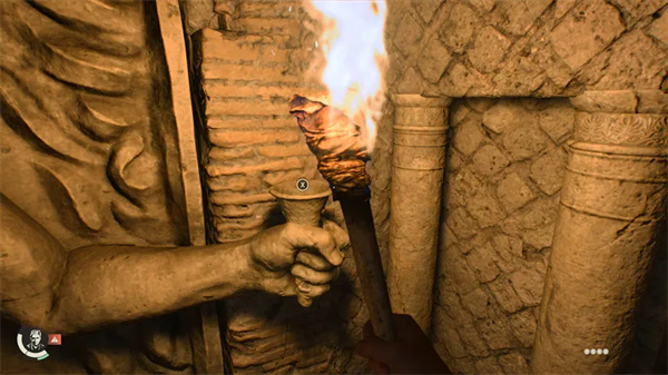 从它的右侧抓起火把并点燃它,然后把它放在它的左手上。