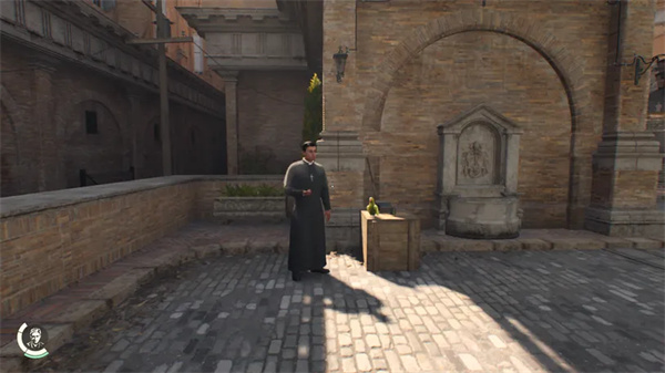 在梵蒂冈,你正在寻找一位名叫利玛窦神父的神父和他的宠物鹦鹉皮奥。从使徒图书馆出发,沿着街道向右行驶,前往忏悔泉。当你走近时,你会听到 Ricci 和 Pio 互相交谈。与他交谈以启动巨人教团。