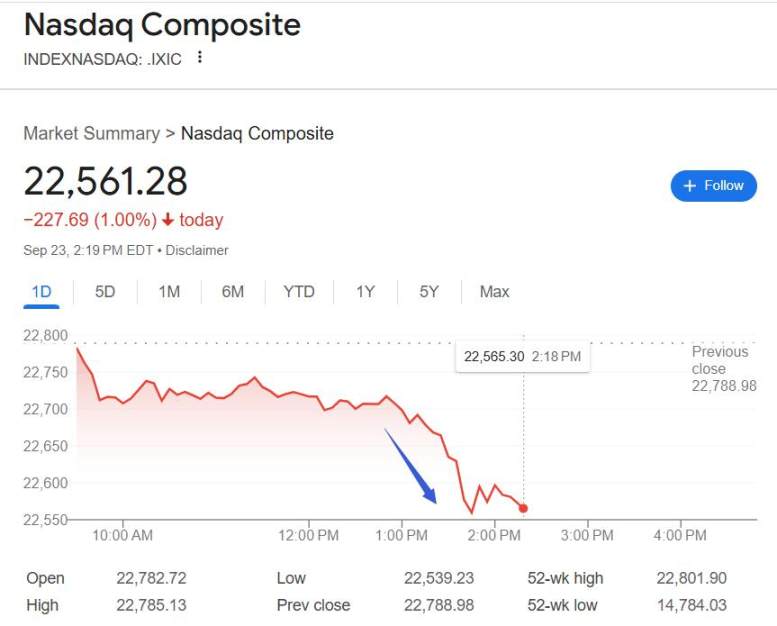 鲍尔提到股市被高估后,道指转跌,三大美股指由此悉数盘中转跌,标普和纳指跌幅扩大。鲍威尔讲话结束不久,三大指数刷新日低,纳指跌近 1.1%,标普跌逾 0.7%,道指跌幅略超 100 点、跌逾 0.2%。