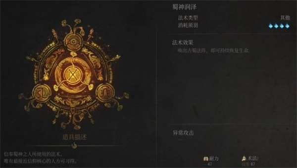 唤出法阵立于其中,便可获得蜀神恩泽,持续疗愈自身。