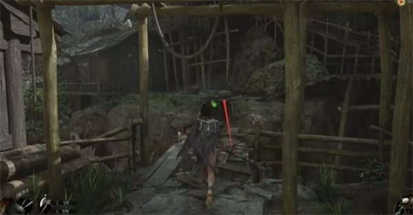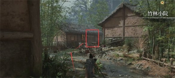 继续前进,直到遇到一个持盾杂兵,在持盾杂兵附近,左侧有一条小路,进入后就是竹林小院。