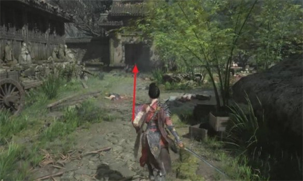 2、然后回到神龛的位置,面对神龛转头开启尽头的门。