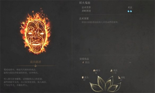 在明末渊虚之羽中法术分为术法、羽化、其他,其中妖火鬼面是游戏内的一种术法法术,部分玩家不知道妖火鬼面有什么效果以及如何获取,下面就为大家带来明末渊虚之羽中妖火鬼面法术的效果及其获取方法,有需要的玩家可以参考。