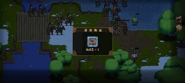 上岸后调整队形拾取山灵芝(24,27),等待侯成进攻触发任务
