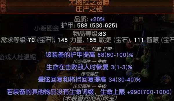 腰带:需要满足最高400的力量需求 我们通过军团珠宝致命 惯性赤红 天赋 装备属性 达成400力量