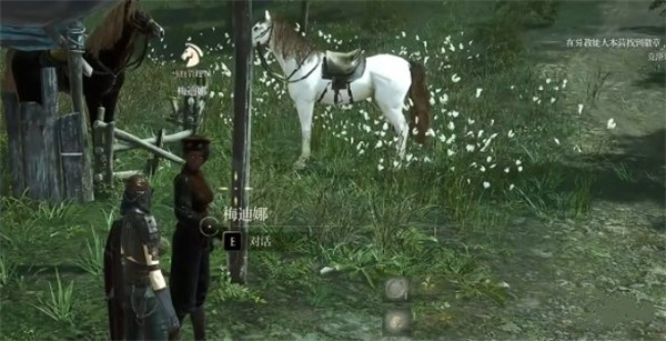4、进入之后与NPC对话,告诉你会让你去找一匹白马。