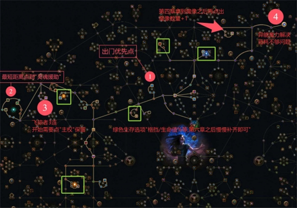 优先点出1这边的召唤生物持续时间,之后向左边进行加点。