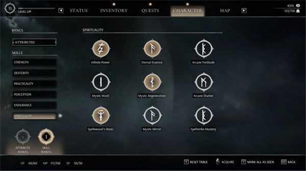 灵性属性:每点增加你的最大法力值(+10),法力回复(+2%),魔法护甲(+3%)和法术威力(+3%)。