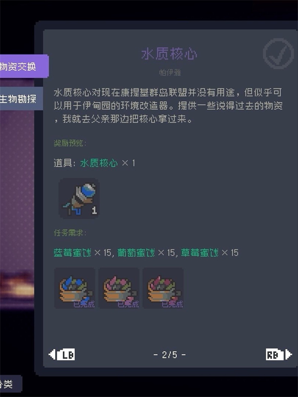 【环境改造器 三级改造】除开第一个零件之外,另外两个零件分别是上述任务的「水质核心」,和湿地解锁的「莲花原形」