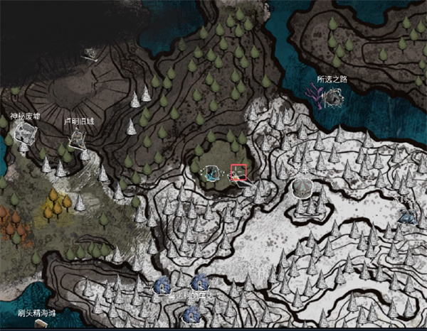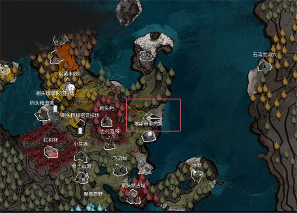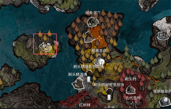 在迷失林中,该区域在石涛崖西边,明黄丰收出口对面。