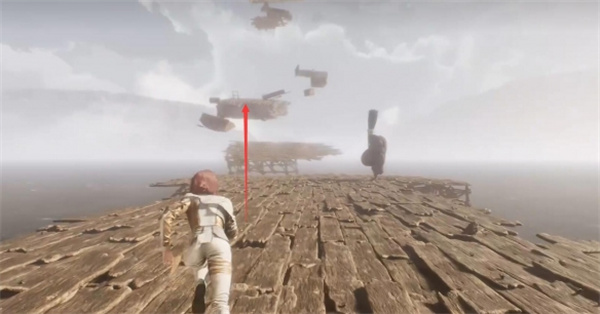 2、一直往上跳,顺着绳索上来,来到图示的平台上;