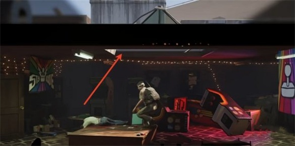 3、到二楼之后,来到第二个房间,爬上天窗。