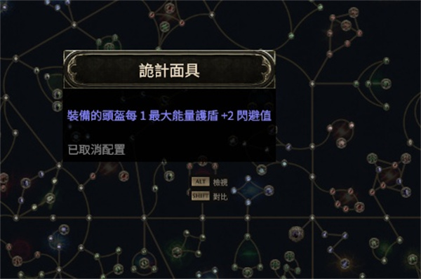 效果:装备头盔伤每1最大能量护盾能+2闪避。