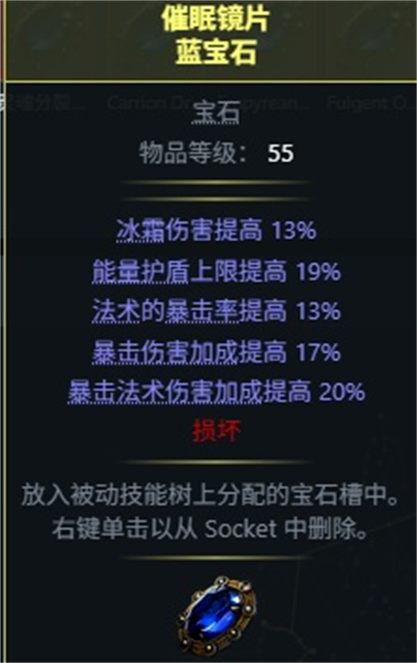 选择蓝玉珠宝,词条方面可以选择冰冷伤害、能量护盾上限、法术暴击率、暴击伤害、暴击法术伤害加成。