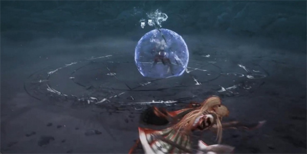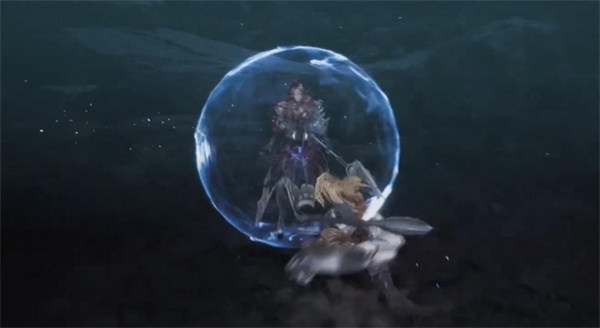3、过一会boss远离玩家,生成蓝色护盾并向前攻击两次(第二次武器出现白色特效);